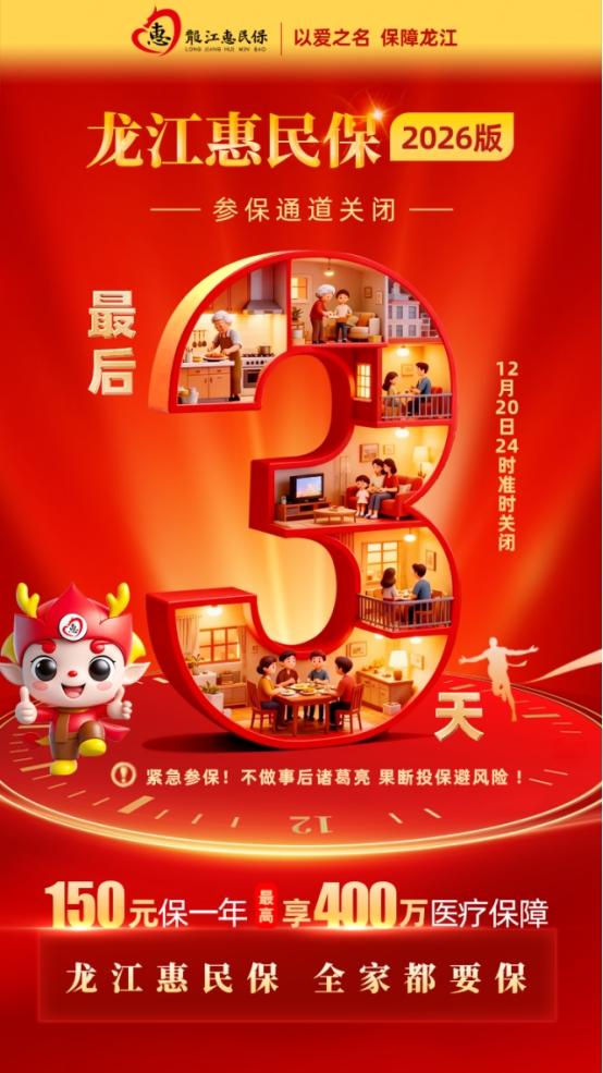 “龍江惠民保2026版”參保通道將于2025年12月20日24時正式關(guān)閉,當(dāng)前參保已進入最后3天倒計時。為方便廣大民眾全面了解這一惠民補充醫(yī)療保障政策、精準(zhǔn)把握參保窗口期,相關(guān)部門對產(chǎn)品核心保障內(nèi)容及年度優(yōu)化亮點進行梳理說明。