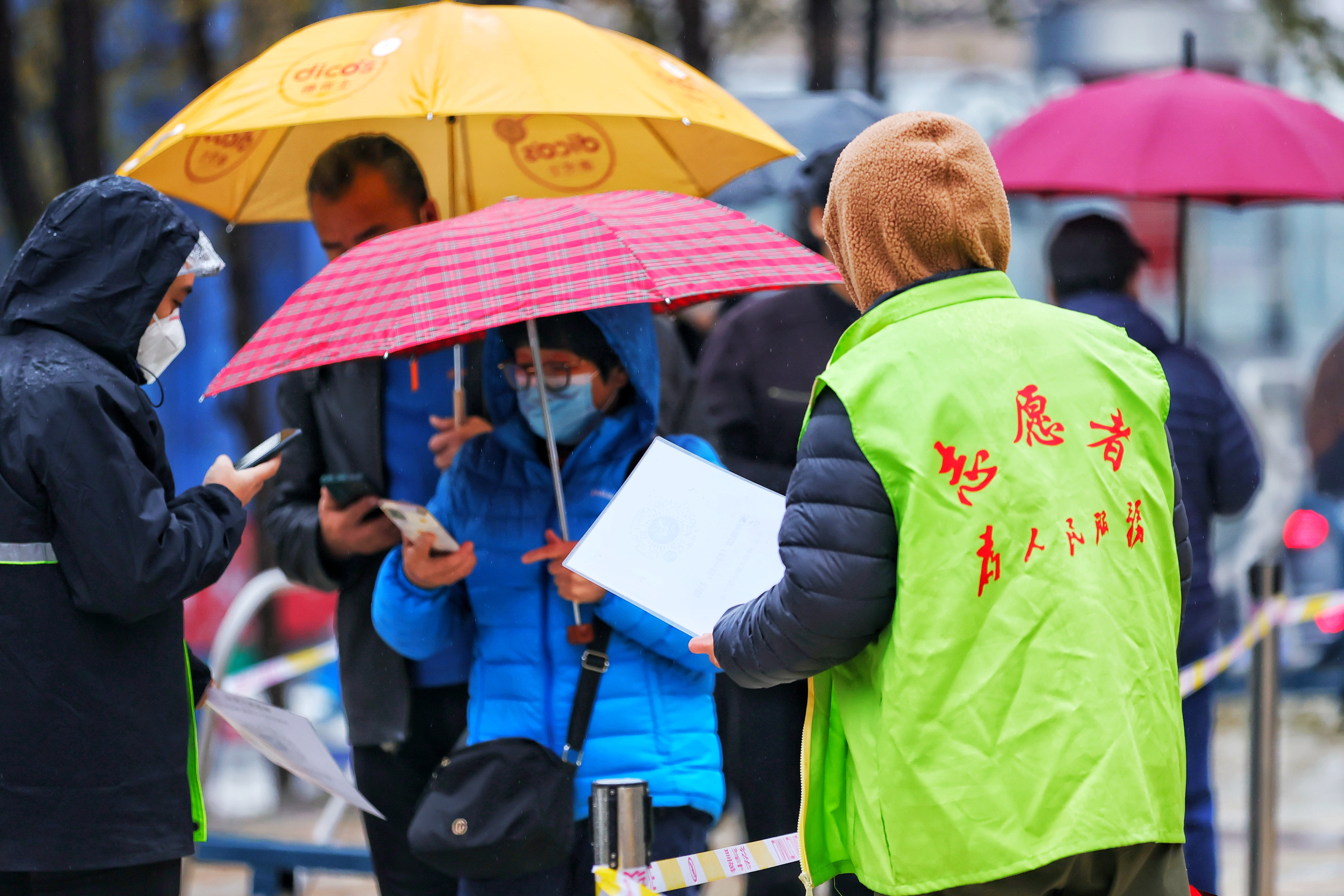 冷雨中,核酸檢測(cè)取樣點(diǎn)的美麗身影