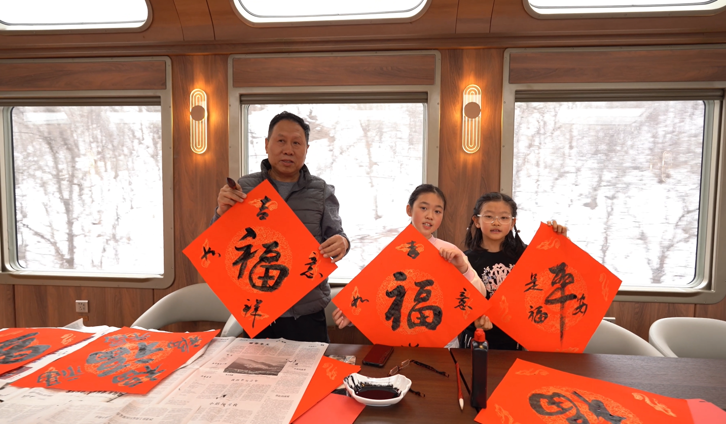 在會(huì)議車(chē)廂,司乘人員為乘客準(zhǔn)備了筆墨紙硯,大家紛紛拿起毛筆,揮毫潑墨。一副副春聯(lián)和福字在大家的筆下誕生,有的蒼勁有力,有的清新秀麗,為蛇年春節(jié)增添了文化氛圍。心靈手巧的游客還拿起剪刀,將一張張紅紙剪成各種各樣的圖案,這些精美的剪紙作品不僅是藝術(shù)品,更是游客對(duì)新年的美好祝福。