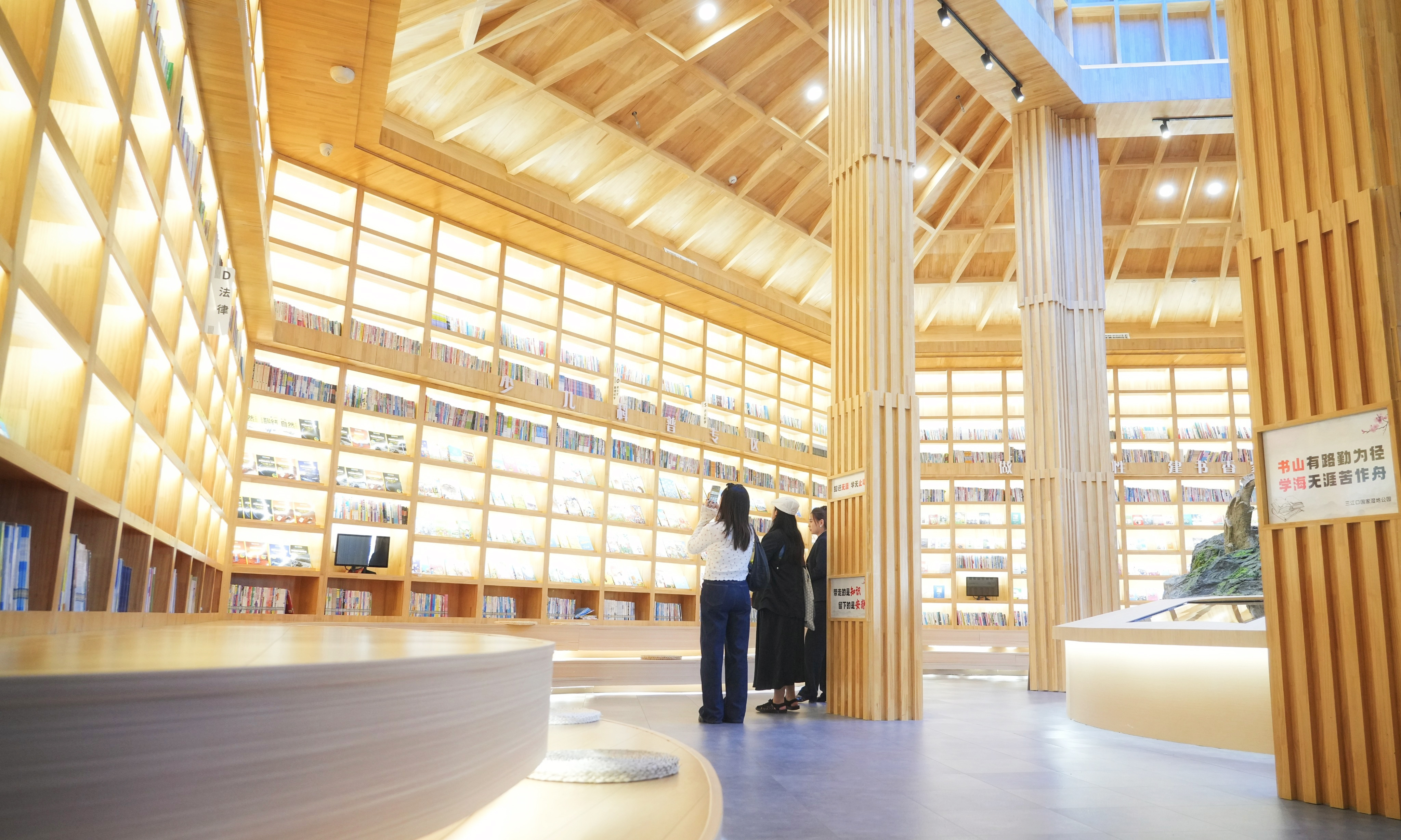 游客若是累了,可以停下腳步,走進(jìn)位于濕地腹地的公園圖書館,讀一讀書是個(gè)不錯(cuò)的選擇。在這座占地面積353平方米的圖書館內(nèi),藏書超15000余冊,在這里你能找到生命科學(xué)、天文、自然科學(xué)等多種圖書。這里“多寶格”書架與木屋元素設(shè)計(jì)相結(jié)合,伴隨著木屋的香味,讓讀者沉浸在書的海洋。