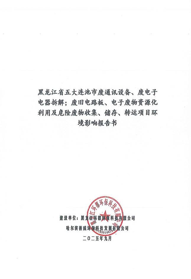 黑龍江省五大連池市廢通訊設(shè)備、廢電子電器拆解;廢舊電路板、電子廢物資源化利用及危險廢物收集、儲存、轉(zhuǎn)運(yùn)項(xiàng)目環(huán)境影響報告書及公眾參與說明