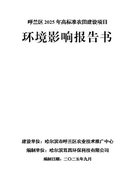 呼蘭區(qū)2025年高標(biāo)準(zhǔn)農(nóng)田建設(shè)項(xiàng)目環(huán)境影響報(bào)告書及公眾參與說明