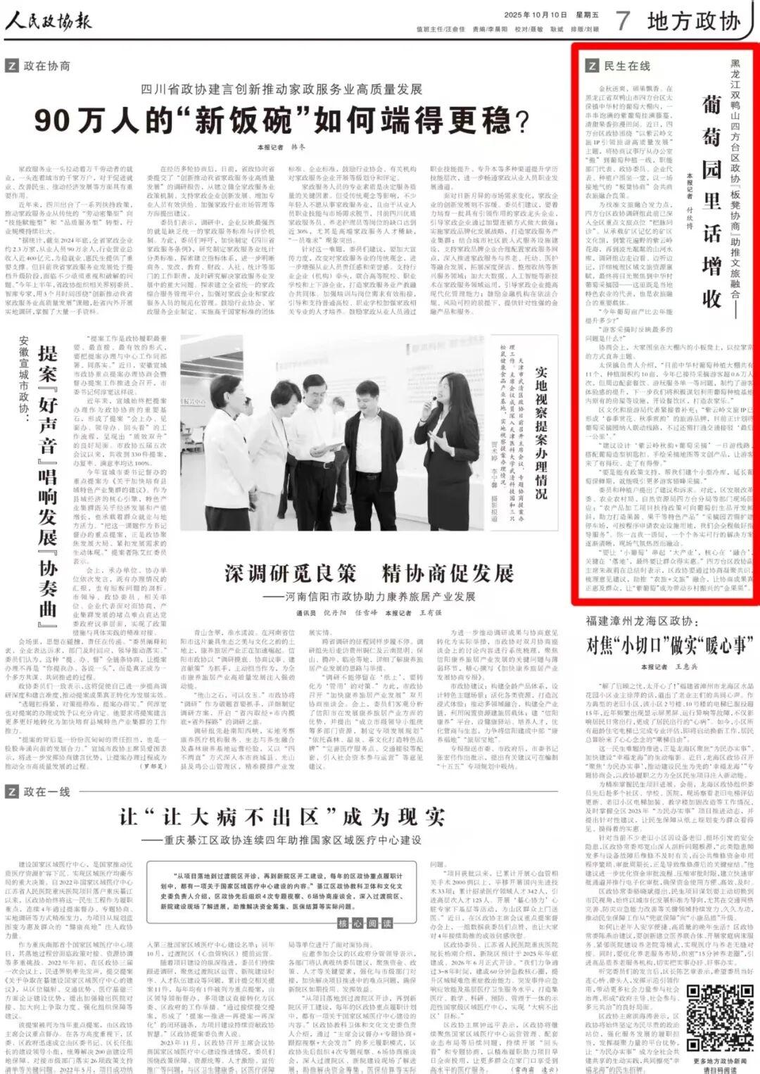 “1158”工作法·實踐丨葡萄園里話增收 雙鴨山市四方臺區(qū)政協(xié)“板凳協(xié)商”助推文旅融合